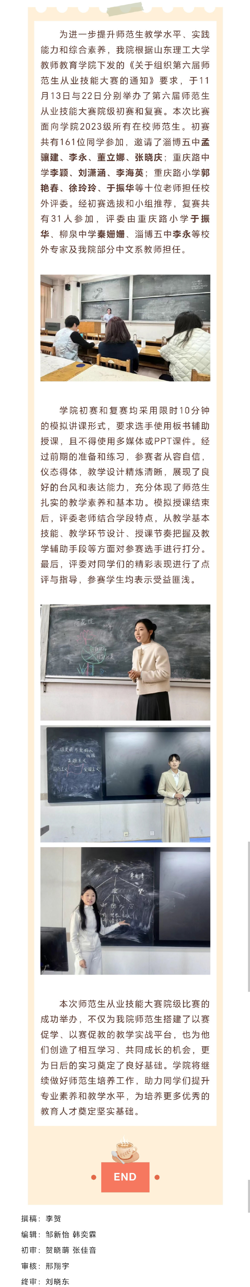 文学与新闻传播学院顺利举行第六届师范生从业技能大赛院级初赛、复赛