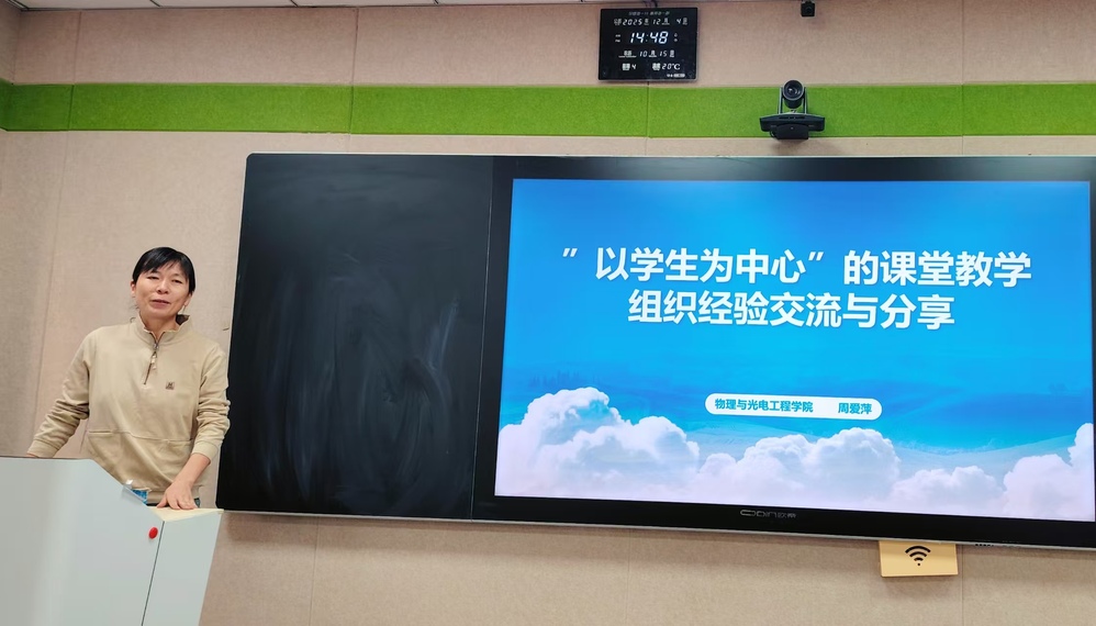为进一步提升学院教师“以学生为中心”的教学能力,促进有组织的教学,12月4日下午,学院举办“‘以学生为中心’的教学经验交流与分享”专题教研活动,邀请了物理与光电工程学院周爱萍和外国语学院陶新慧为分享嘉宾,与学院全体教师共同交流、探讨,碰撞出了改进教学的朵朵火花。本次活动由学院教研室主任林晓凤主持。
