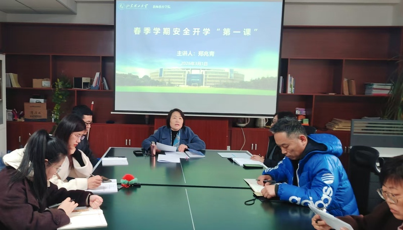 郑兆青首先传达了校党委四届八次全委(扩大)会议暨2026年工作部署会议有关精神,着重围绕校党委书记于红波和校长李玉霞在会上的有关讲话和工作部署进行了学习传达,号召全院职工立足学院实际和岗位职责抓好会议精神贯彻落实。随后,组织了安全开学“第一课”,学习贯彻全省春季开学暨学校安全工作视频会议精神和学校安全工作会议精神,一起学习了河南方城县“1.19”和江西新余“1.24”重大火灾事故调查报告,结合近期学校发生的相关安全事故,坚持以案说法,深刻汲取教训。要求重点关注学生教育实习安全及课堂教学、教材选用中的意识形态安全,共同营造安全、稳定、有序的教学环境。